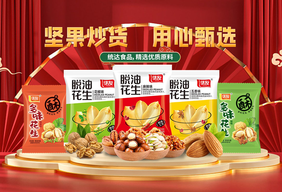 洛陽市統達食品有限公司創(chuàng)建于2013年,坐落于風景秀麗的嵩山腳下,東依省會鄭州、隴海、焦枝兩大鐵路在此交匯,西連高速,洛界高速,縱橫東西南北,207國道,交通便利。當地環(huán)境優(yōu)美。經濟繁榮昌盛,實為興業辦企,鴻運福順的好地方。少林寺,白馬寺,龍門石窟,玄奘故里等名勝古跡星羅棋布,近在咫尺,盡展千年華夏文明。 我廠是一家集生產,研制,銷售為一體的食品加工企業,總投資1500萬元,廠房占地面積5000平方米,員工100余人,其中技術人員20余人,年加工能力達1500余噸。公司以堅果炒貨為主導,自主三大品牌:統達牌、紅仁館牌、佬友牌和授權品牌速達,主要產品有酒鬼花生系列,麻辣花生系列,香辣酥系列,果仁裹粉類系列,怪味胡豆系列,蠶豆、青豆系列等多個品類。產品暢銷全國各地,深受用戶好評。產品選自上等原料經多次精選而制,秉承濃郁的特色風味,保留其原材料的營養和原汁原味,富含不飽和脂肪酸和人體必需的氨基酸和鋅元素,不含膽固醇,黃曲霉素,不添加防腐劑、著色劑;具有濃郁獨特的香味,是真正的“從土地到餐桌”的健康食品。產品特點:色澤金黃,顆粒飽滿,然后經多種工藝加精良的天然配料精制而成,鎖生產出來的產品既保持著產品的獨到的口味,又不失產品天然的營養成分,滋味純正,辣椒鮮紅食之麻,辣,香,酥,甜,口感獨特,食后滿口生香,欲罷不能。久食不厭,老少皆宜,居家旅游,佐食配茶,宴賓饋友之佳品,深受廣大顧客歡迎和贊揚。 我們將以精湛的工藝,科學的管理,嚴格的質量控制,優(yōu)異的品質保障,以誠信,創(chuàng)新,勤奮,求實的企業精神,立于強者之林,迎接新的挑戰(zhàn)。以飽滿的熱情迎接與你的合作。 本公司“以質量求生存,以誠信求發(fā)展”歡迎有志之士加入我們的團隊,攜手共創(chuàng)美好明天!